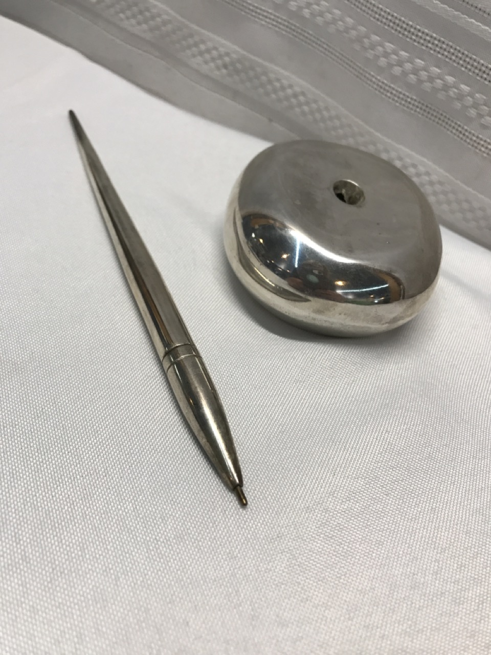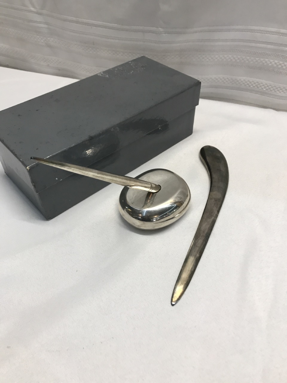 Modernist Silverplate Pen w/ Stand & Letter Opener in Original Box