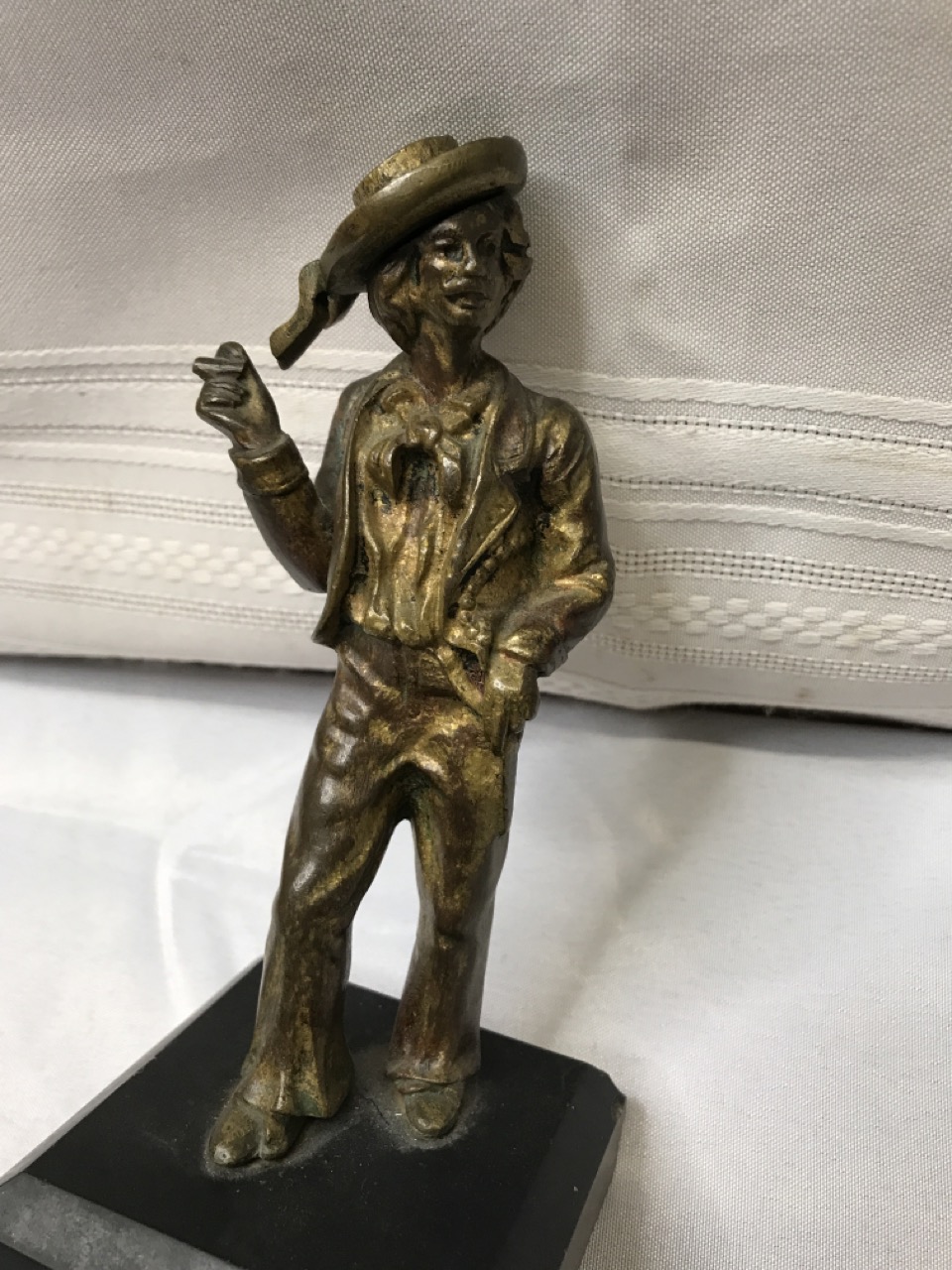 Bronze Spanish Sculpture With Stone Base- 7” T