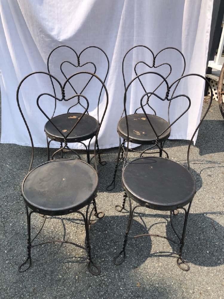 4) Ice Cream Parlor Chairs- Wrought Iron W/ All Original Seats