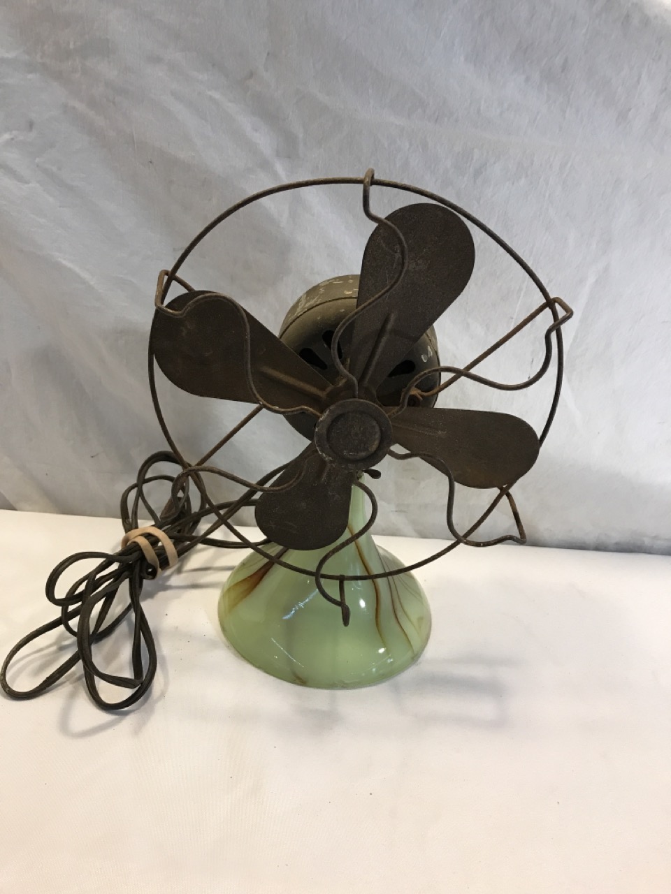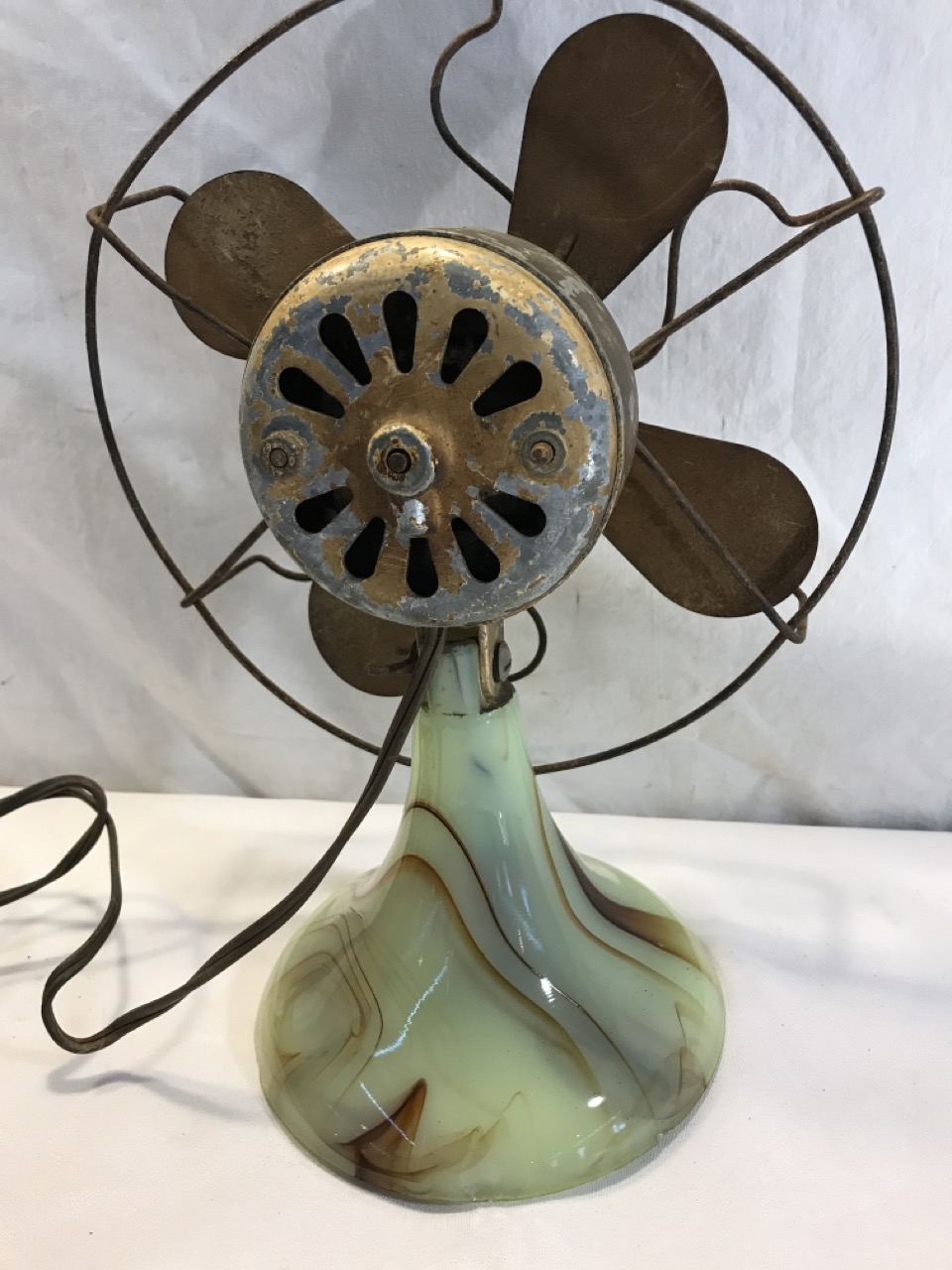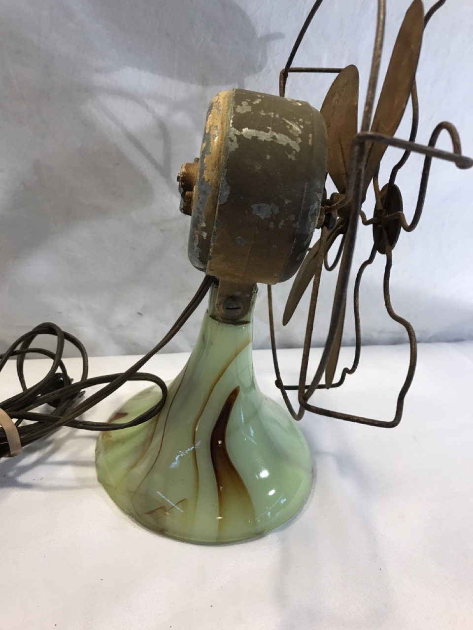Vtg Slag Glass Agro Agate Fan- Doesn’t Come on/ Blades Spin Freely 11” T x 9” W