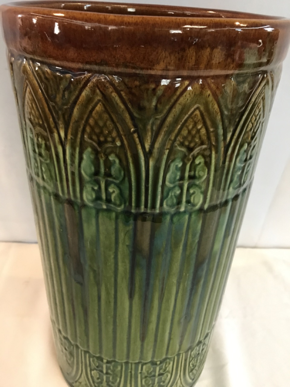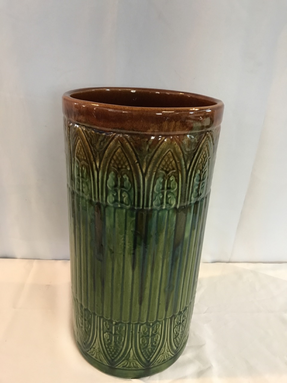 Rare Mccoy Majolica Cathedral Umbrella Stand - 18.5” T x 9.5” Round
