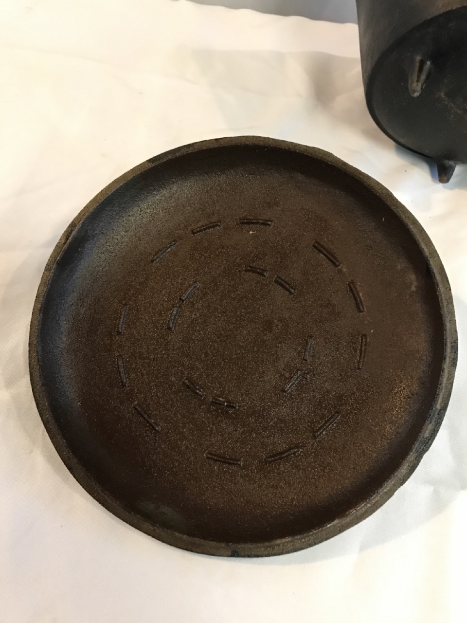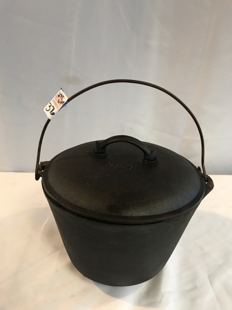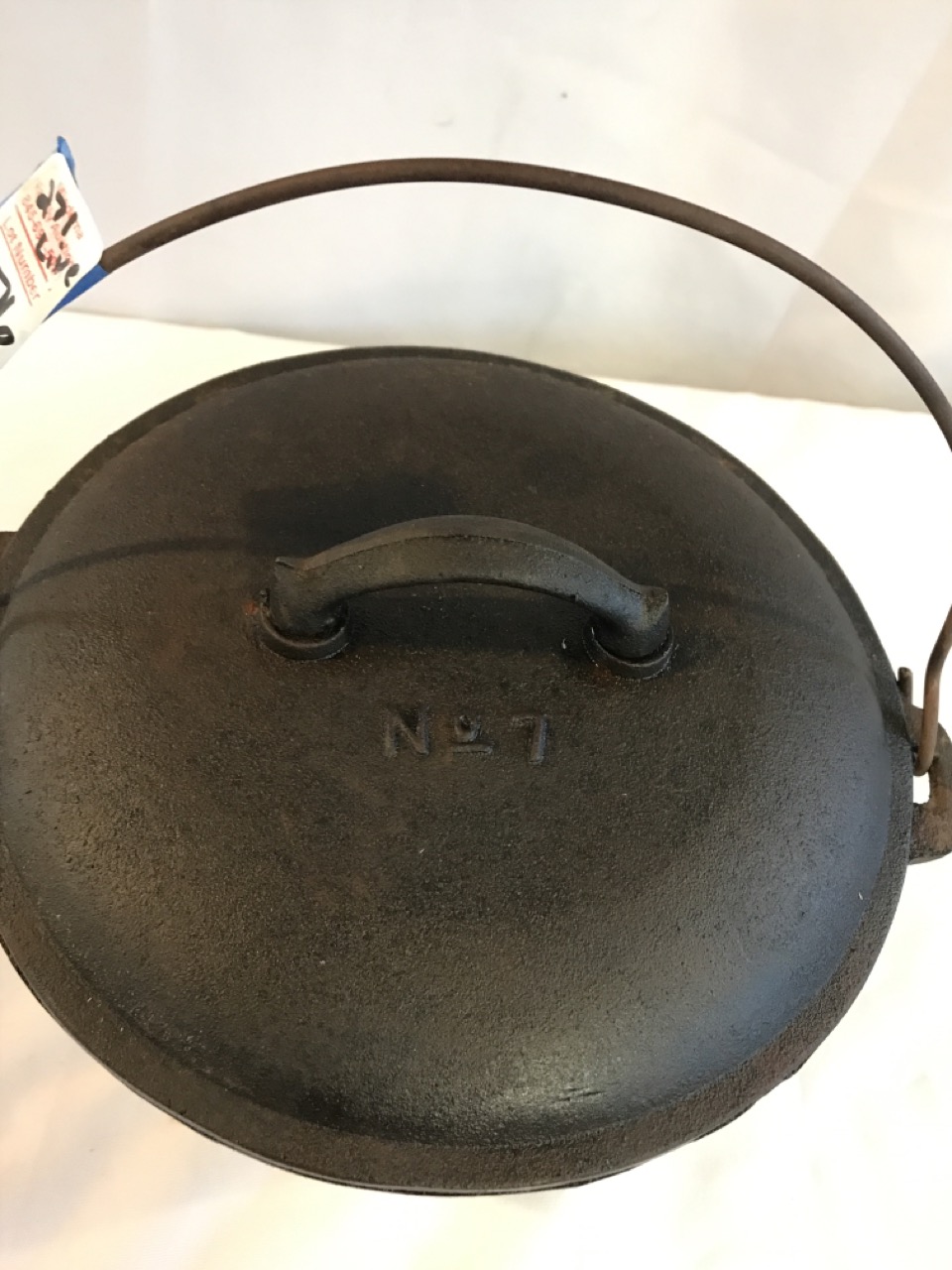 Vtg 3 Footed No. 7 Cast Iron Pot w/ Lid & Handle- 7” T x 9” Round