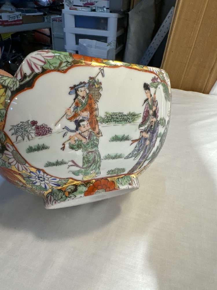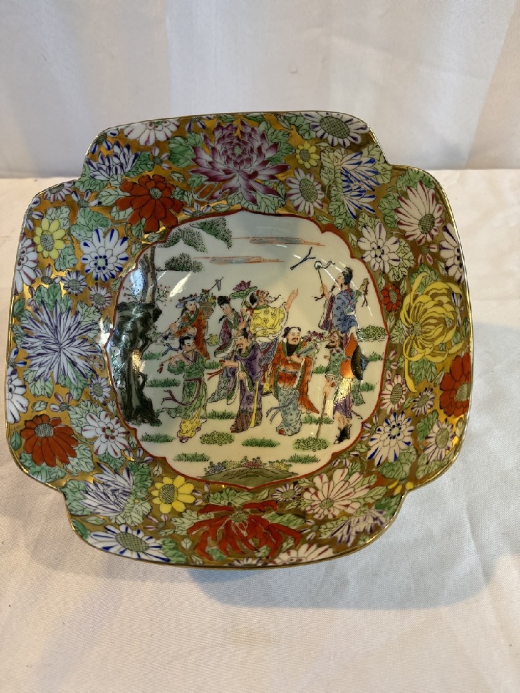 Oriental Porcelain Bowl on Stand - 9 1/2” Square