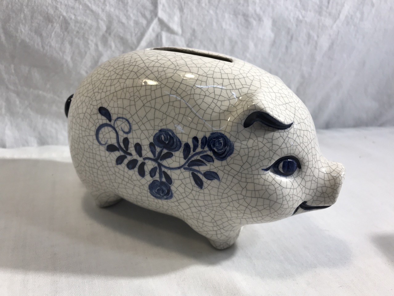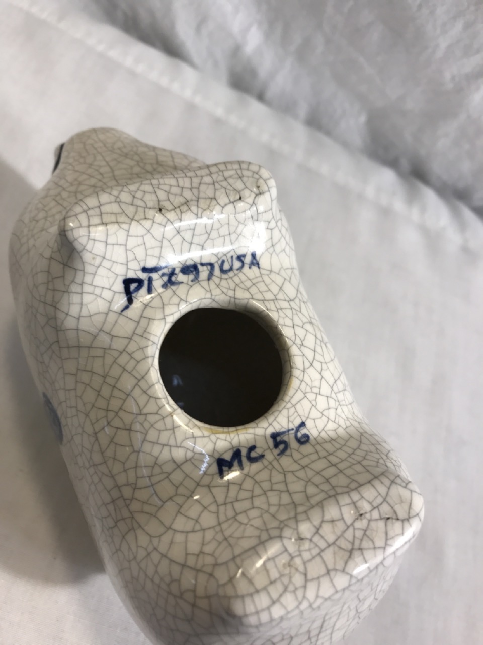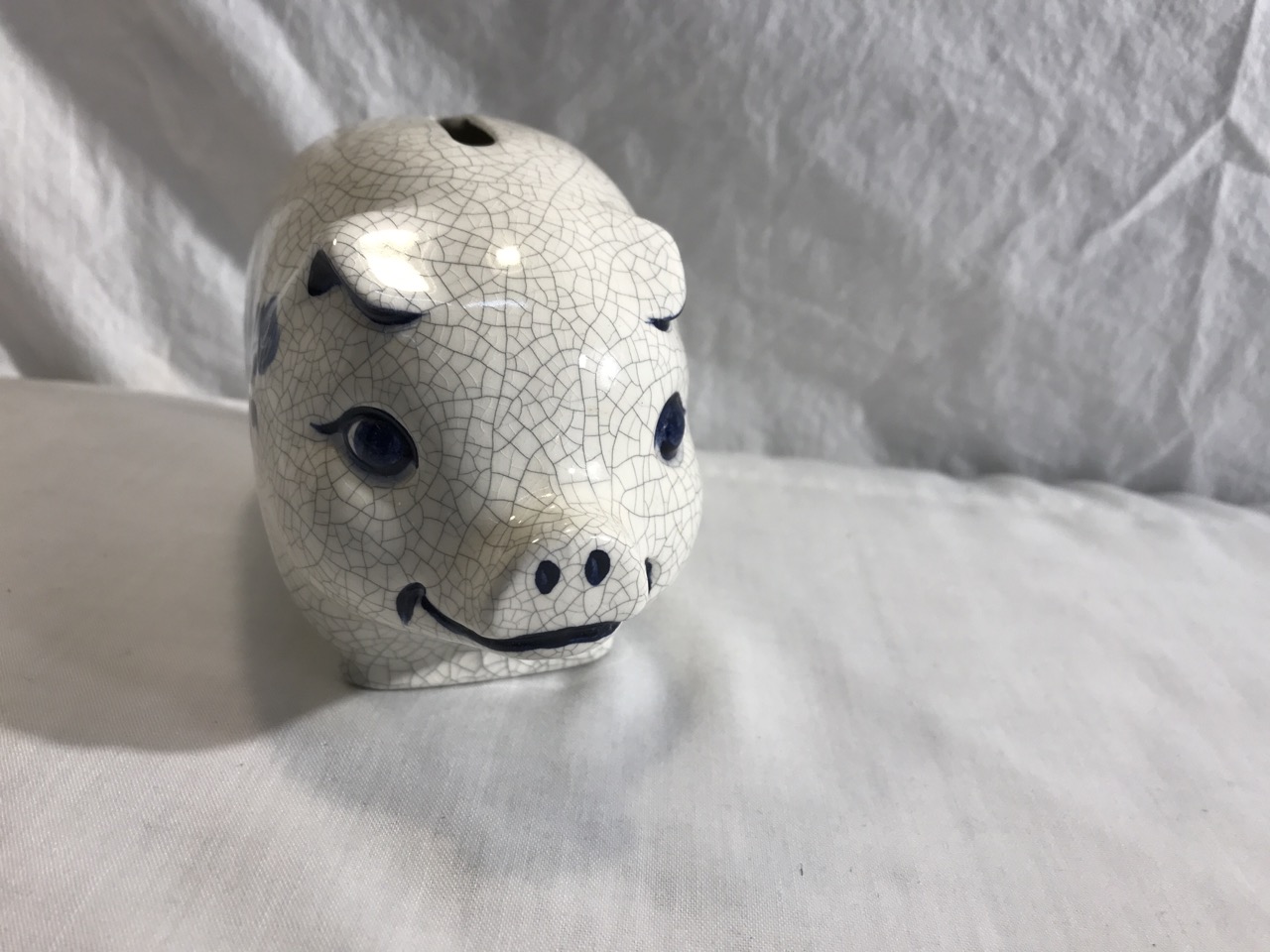 2- Pcs Potting Shed Dedham Pottery including Piggy Bank MC56 & Rabbit Heart Vase( Hairline on inside as pictured)