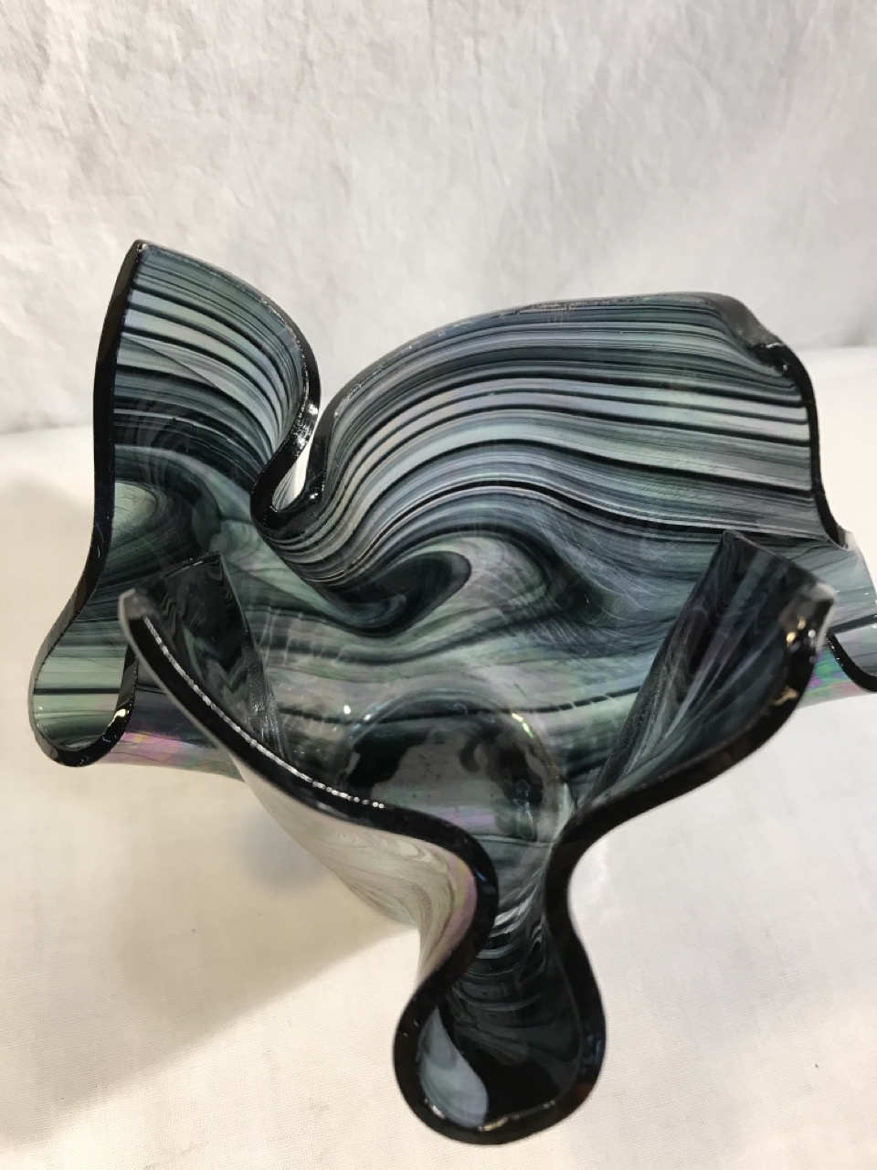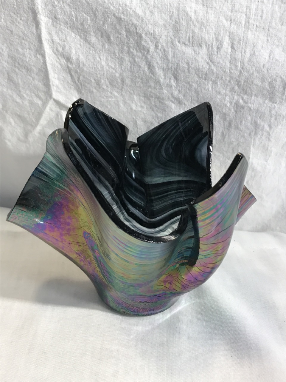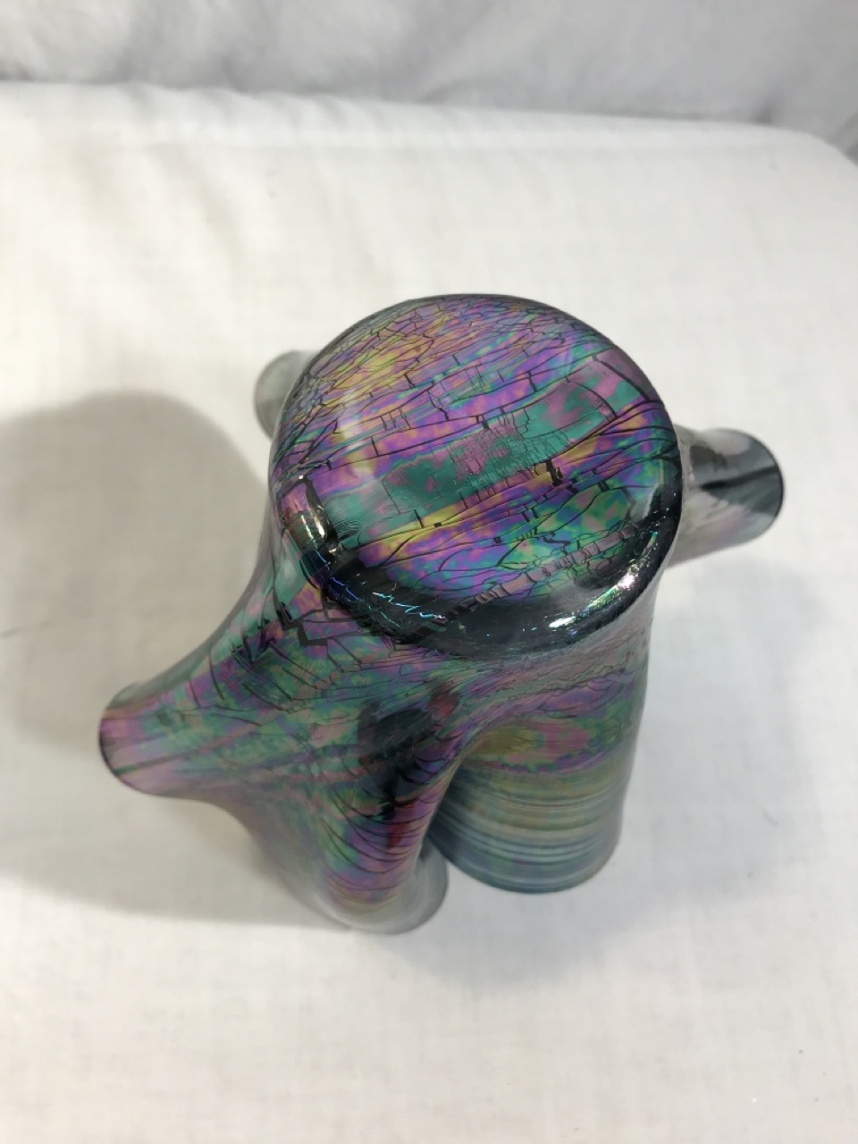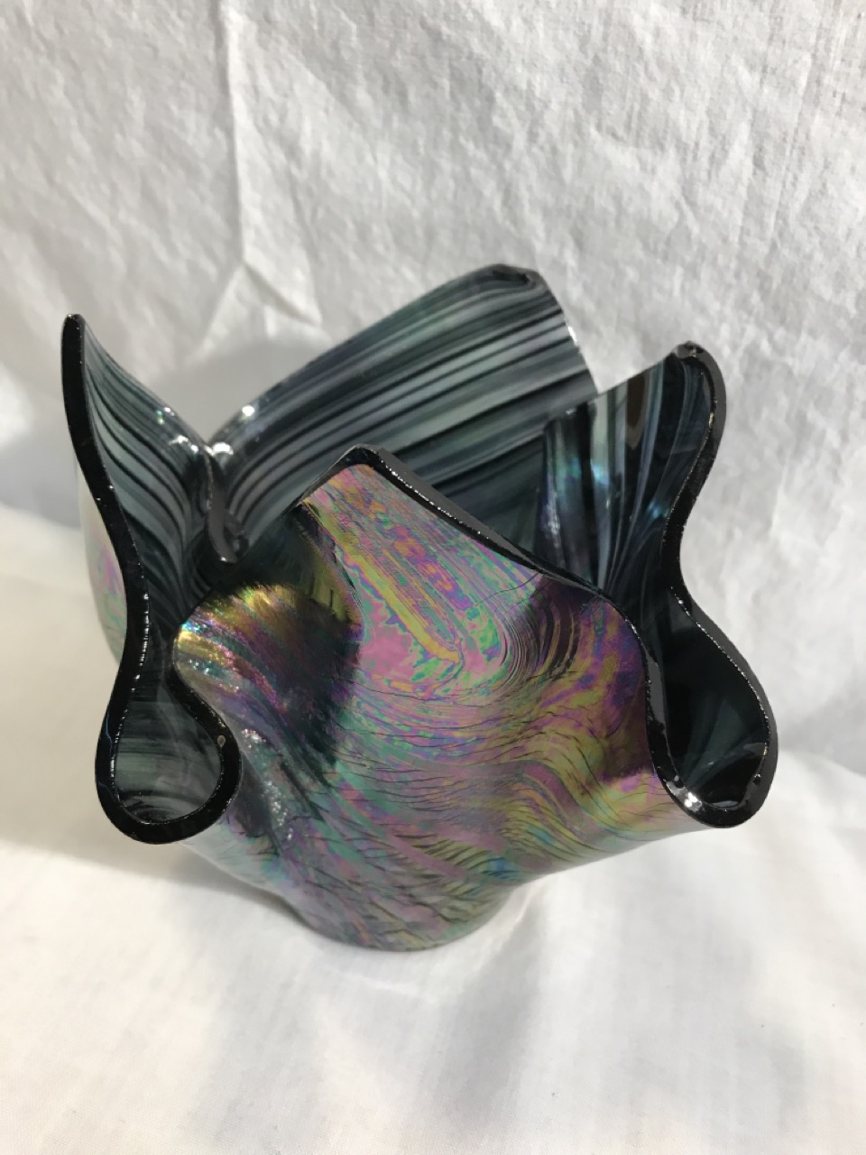 Tony Serviente Hankerchief Rainbow Irredescent Studio Art Glass Vase- 4.5” T x 4 1/4” Wide