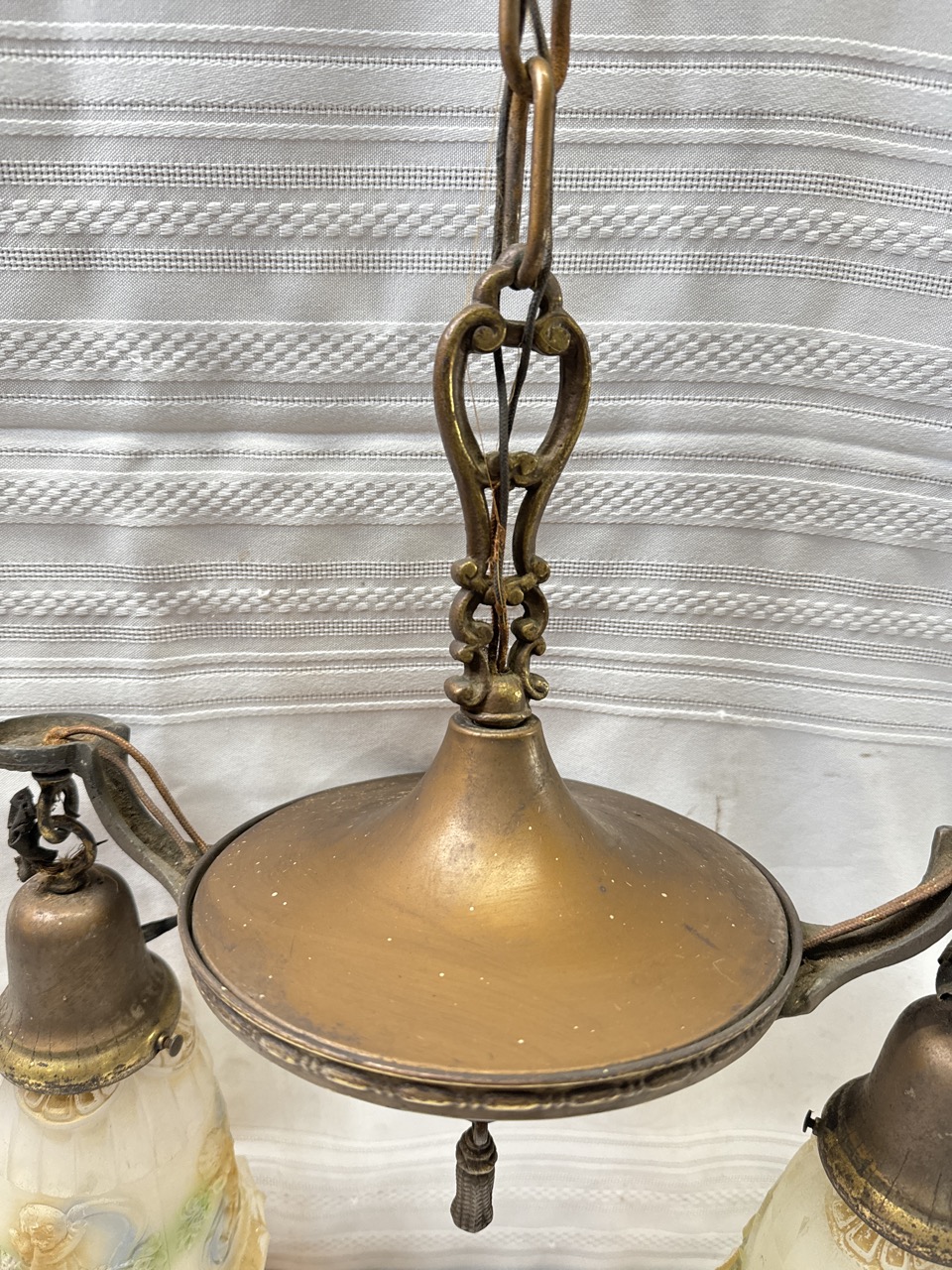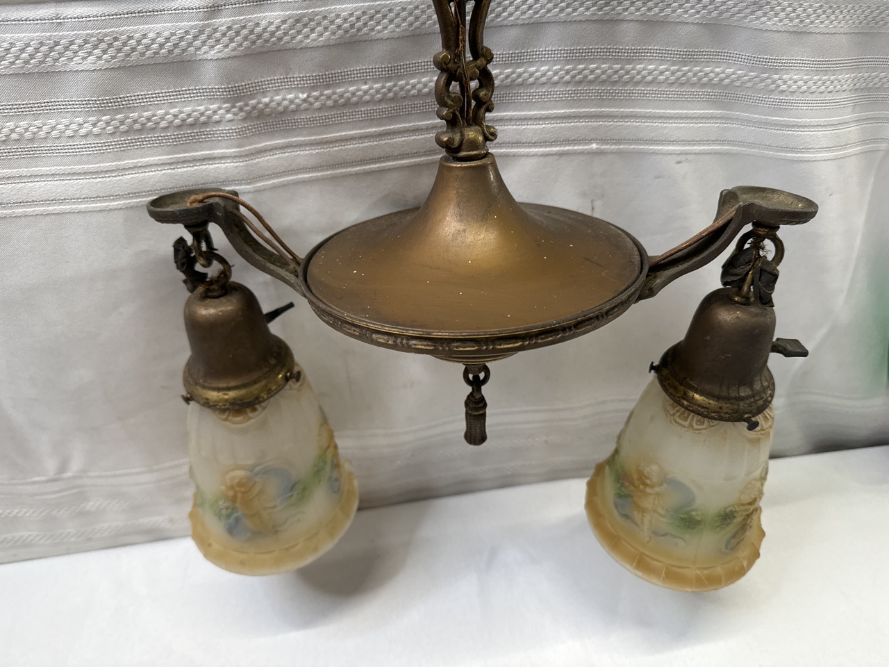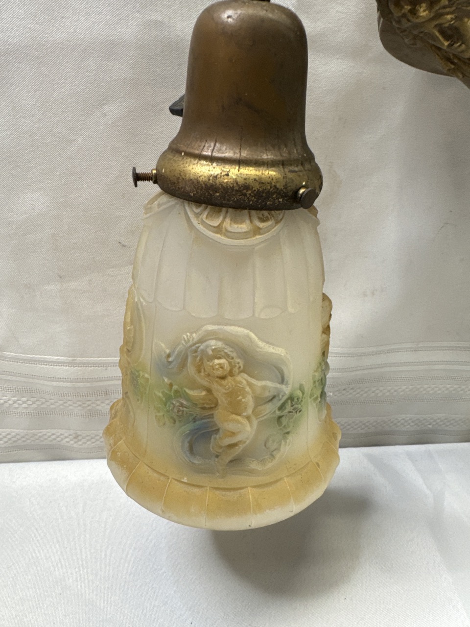 Victorian Art Nouveau Double Arm Light Fixture(15” W) with Figural Shades( 5.5” T x 5” Diameter Bottom)