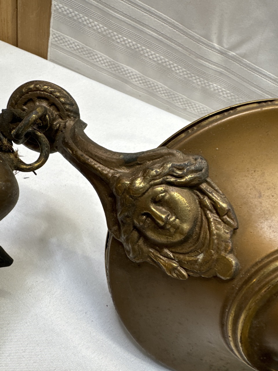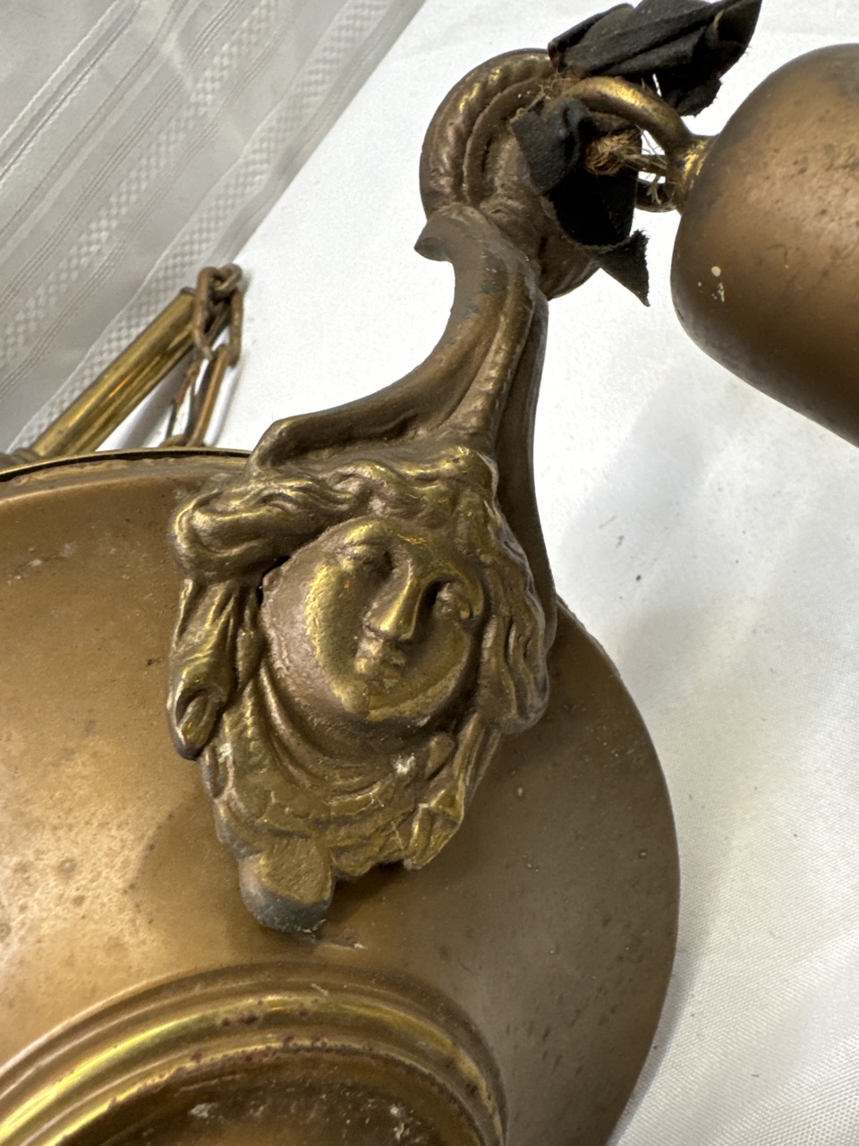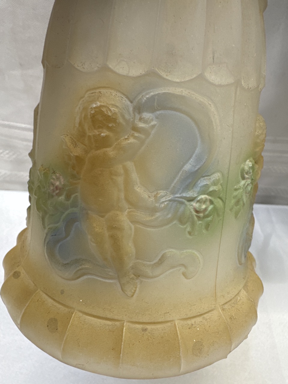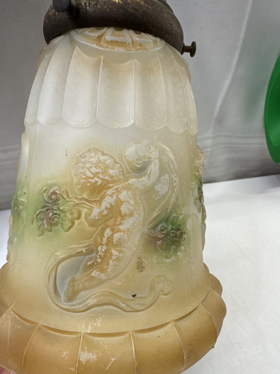 Victorian Art Nouveau Double Arm Light Fixture(15” W) with Figural Shades( 5.5” T x 5” Diameter Bottom)