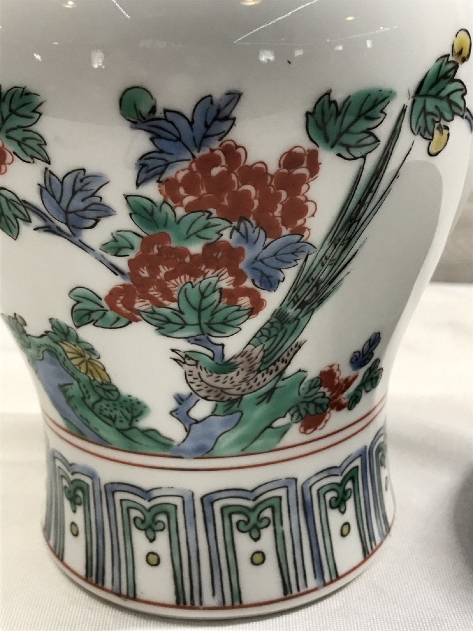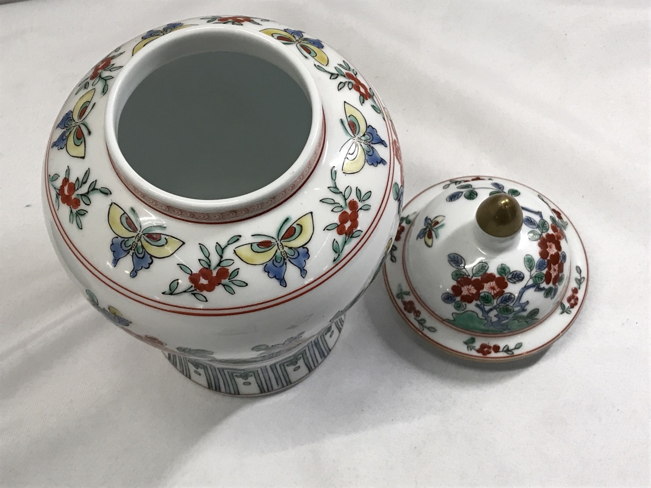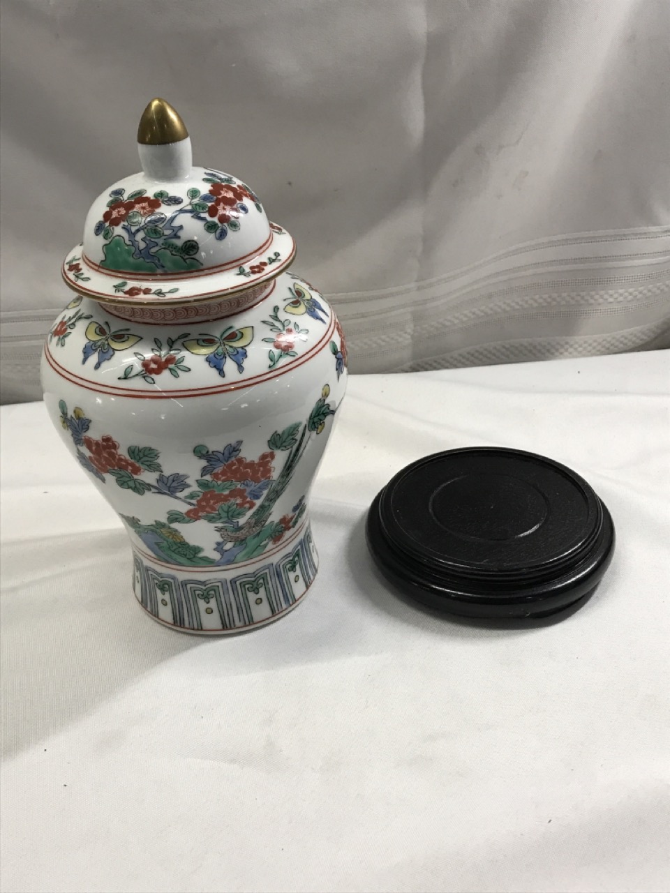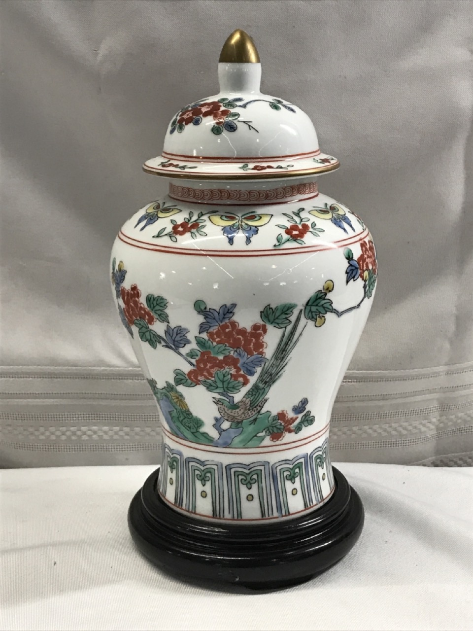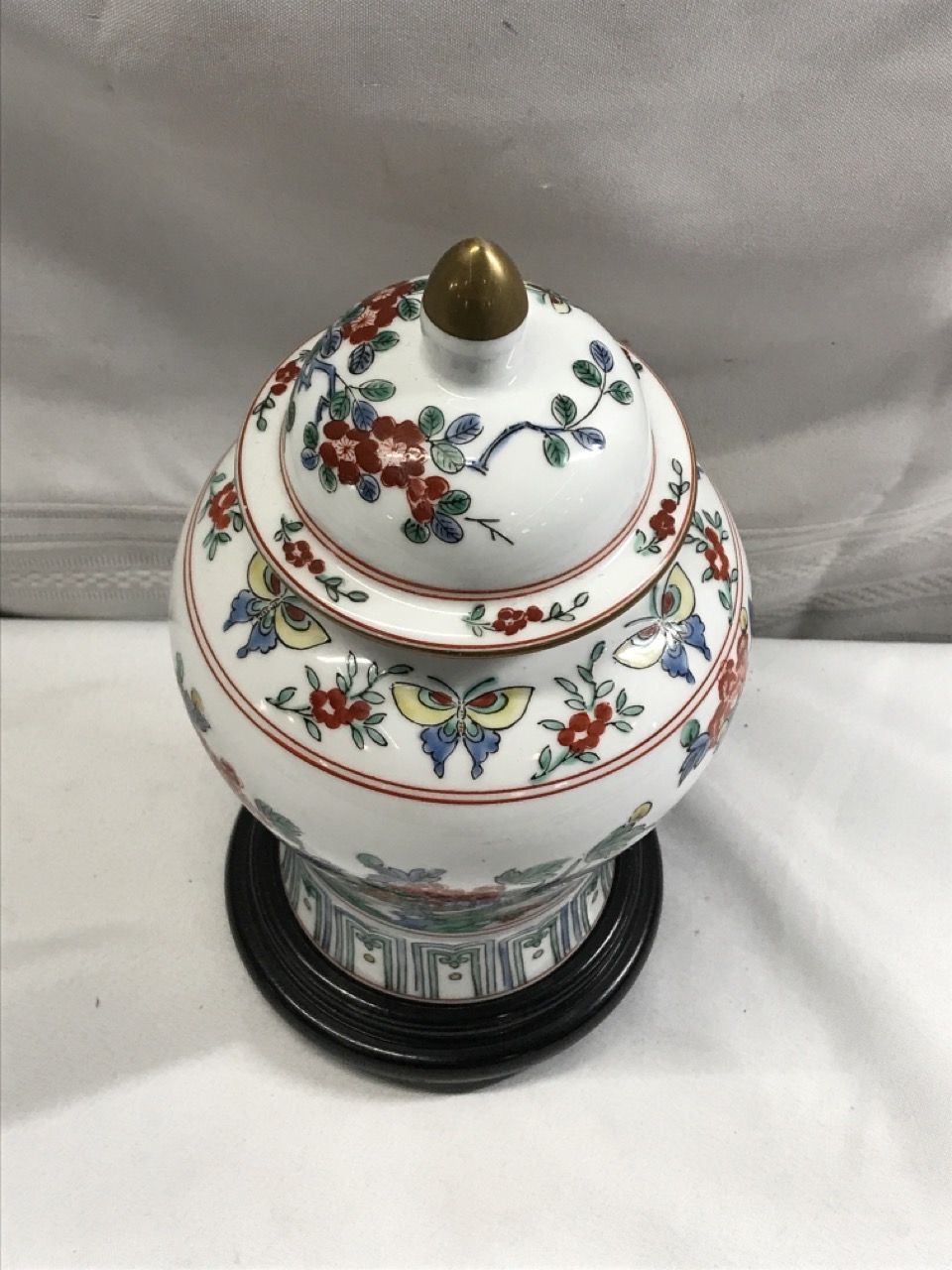 Imari Japanese Hand Painted Ginger Jar on Stand - 10” Tall