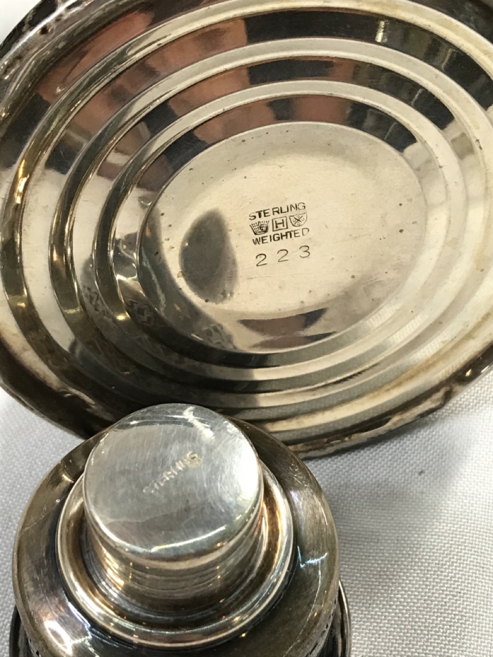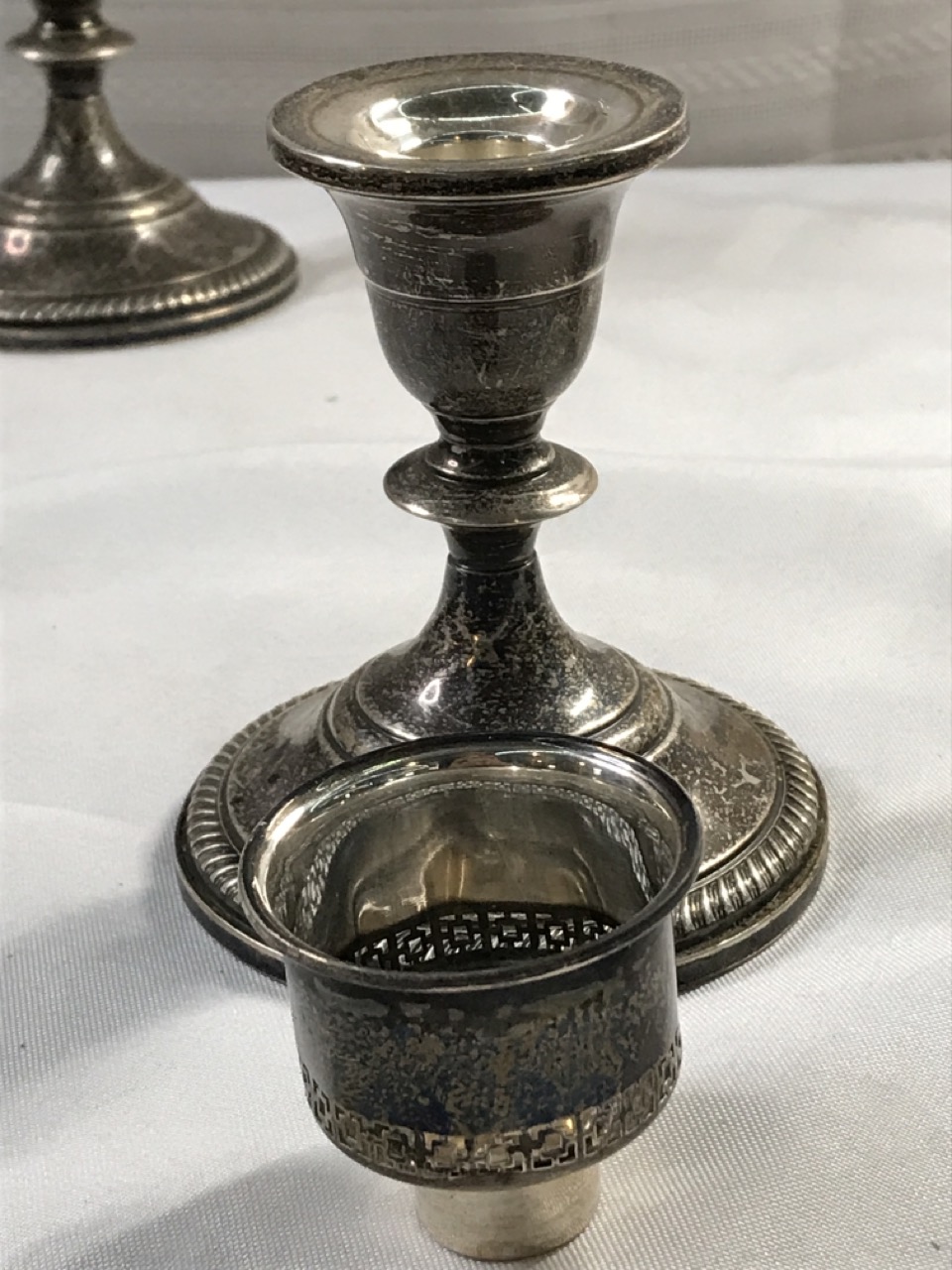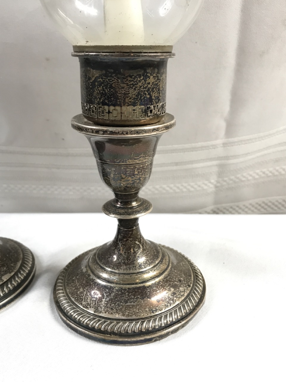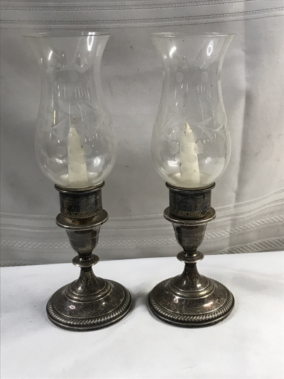 Vtg. Weighted Sterling Hurricane Candlesticks - Cut Glass - 11 1/2” Tall
