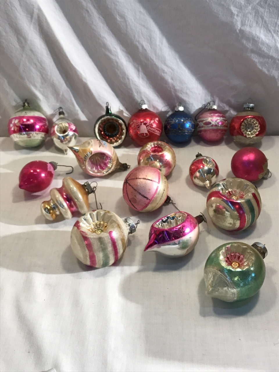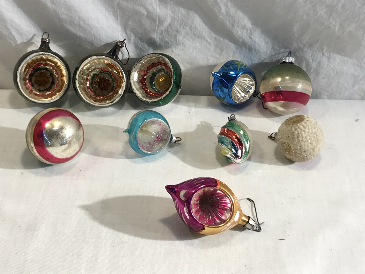 Vtg. Ornaments including Pink Indent, Swirl Barber Pole, Reflector, Atomic, Shiny Brite,++ More