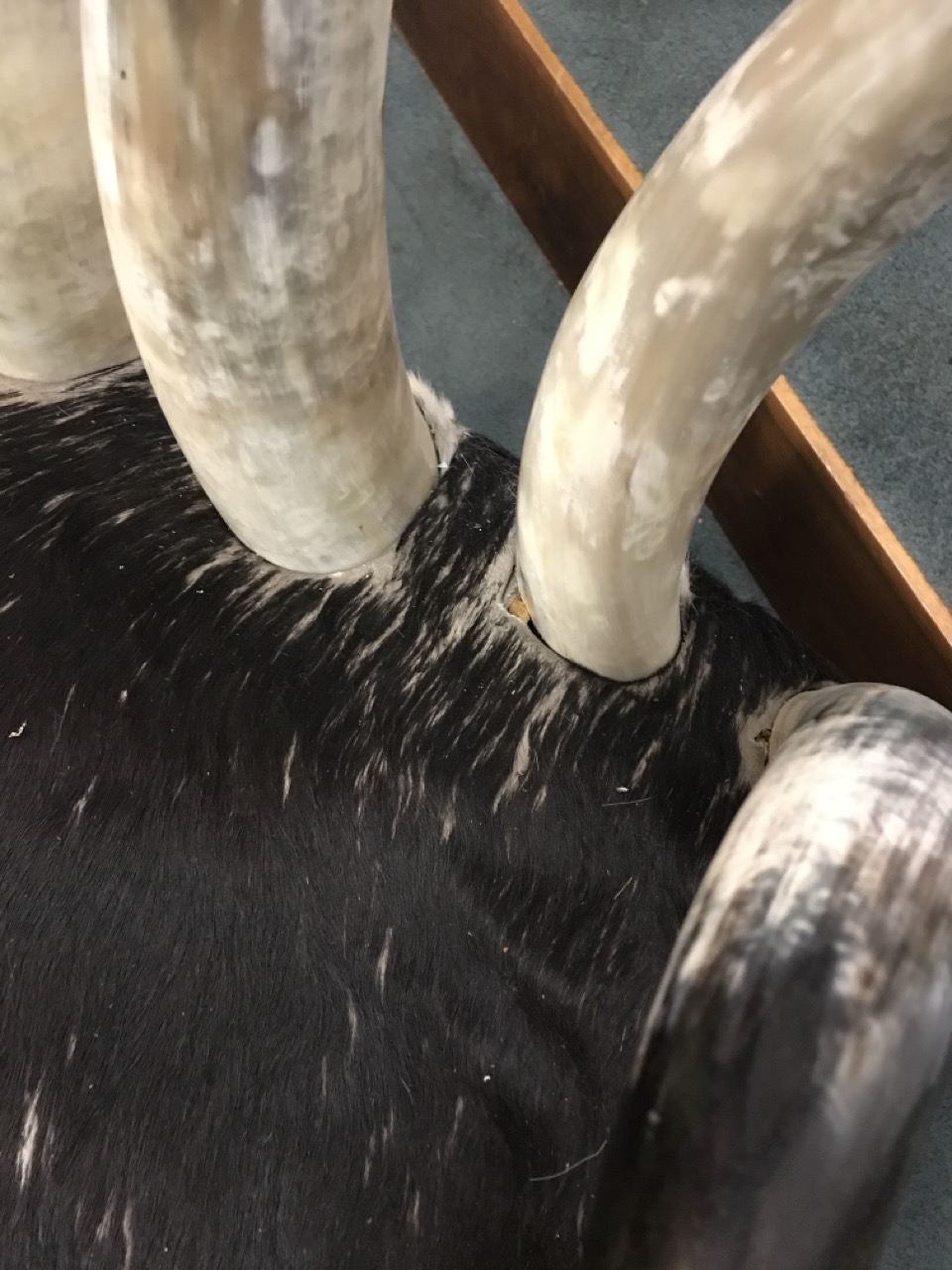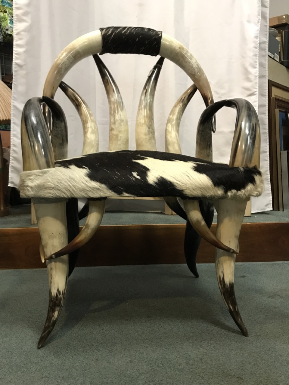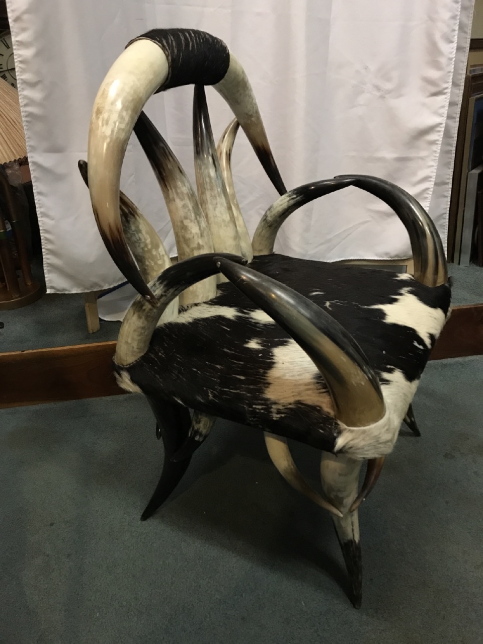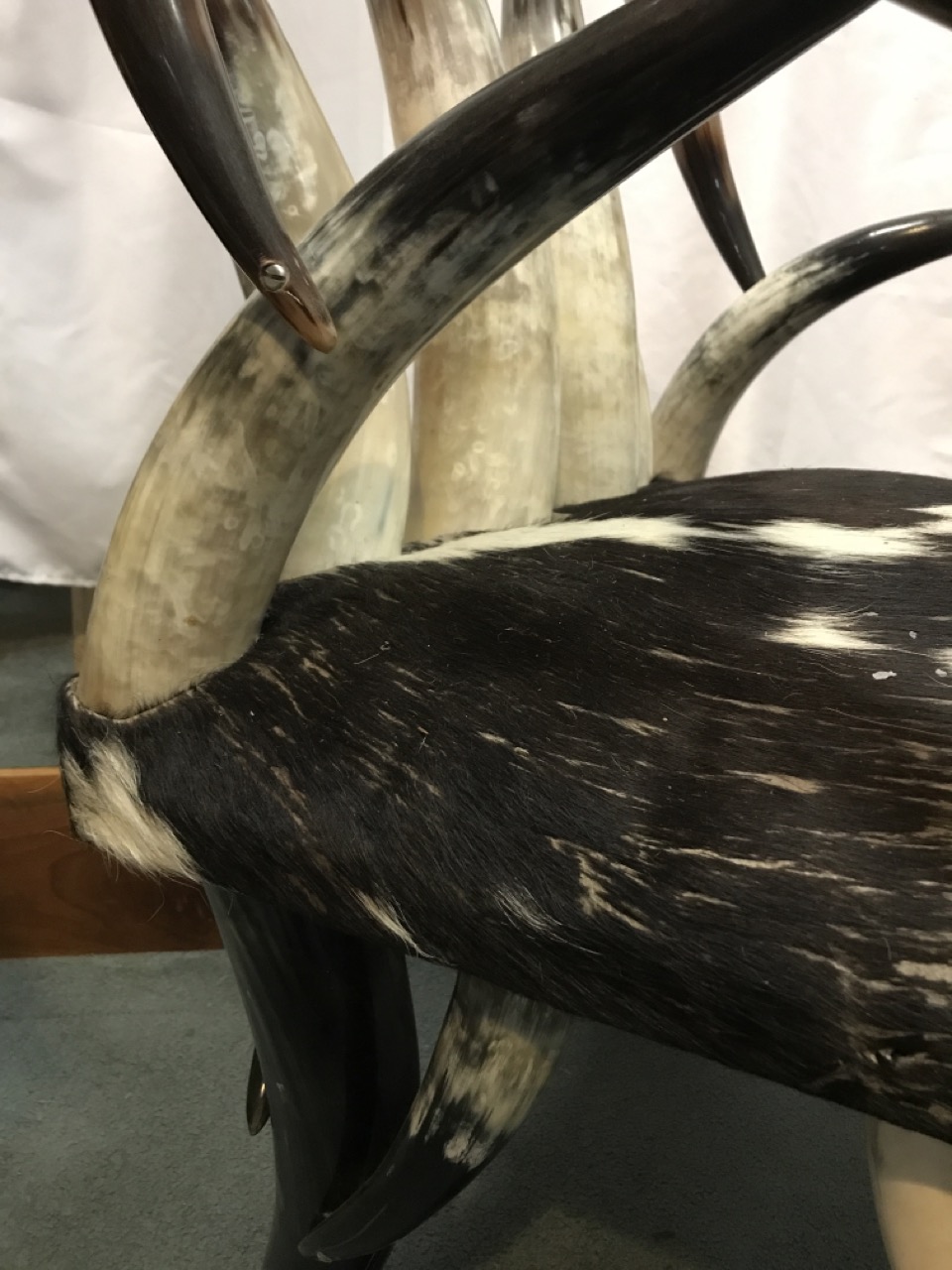 Cowhide Steer horn Chair - 41” to top of back, 26” wide x 22” Deep
