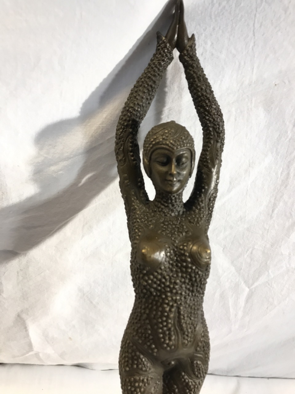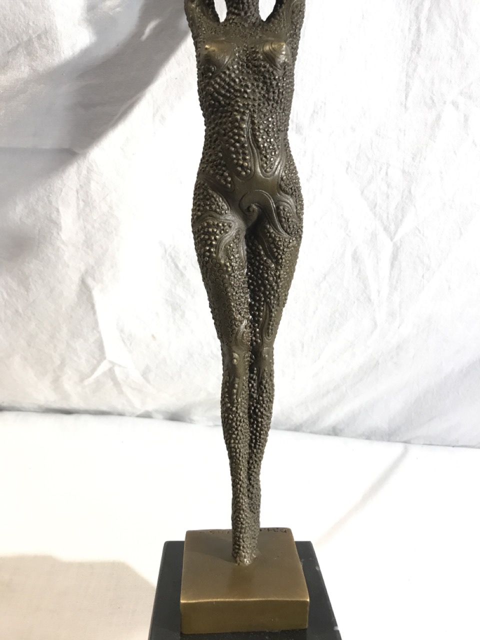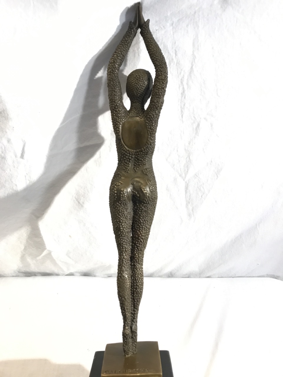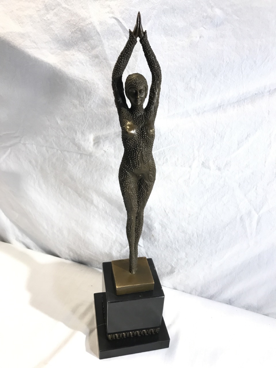 Art Deco D.H. Chiparus Bronze & Marble Woman Sculpture- Created Through Wax Casting Method- 19” T x 4.5” x 4.5” Base