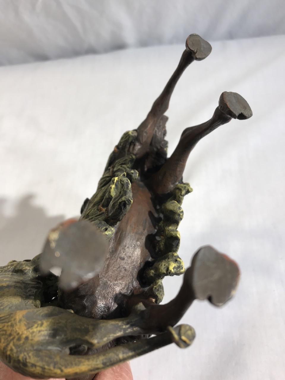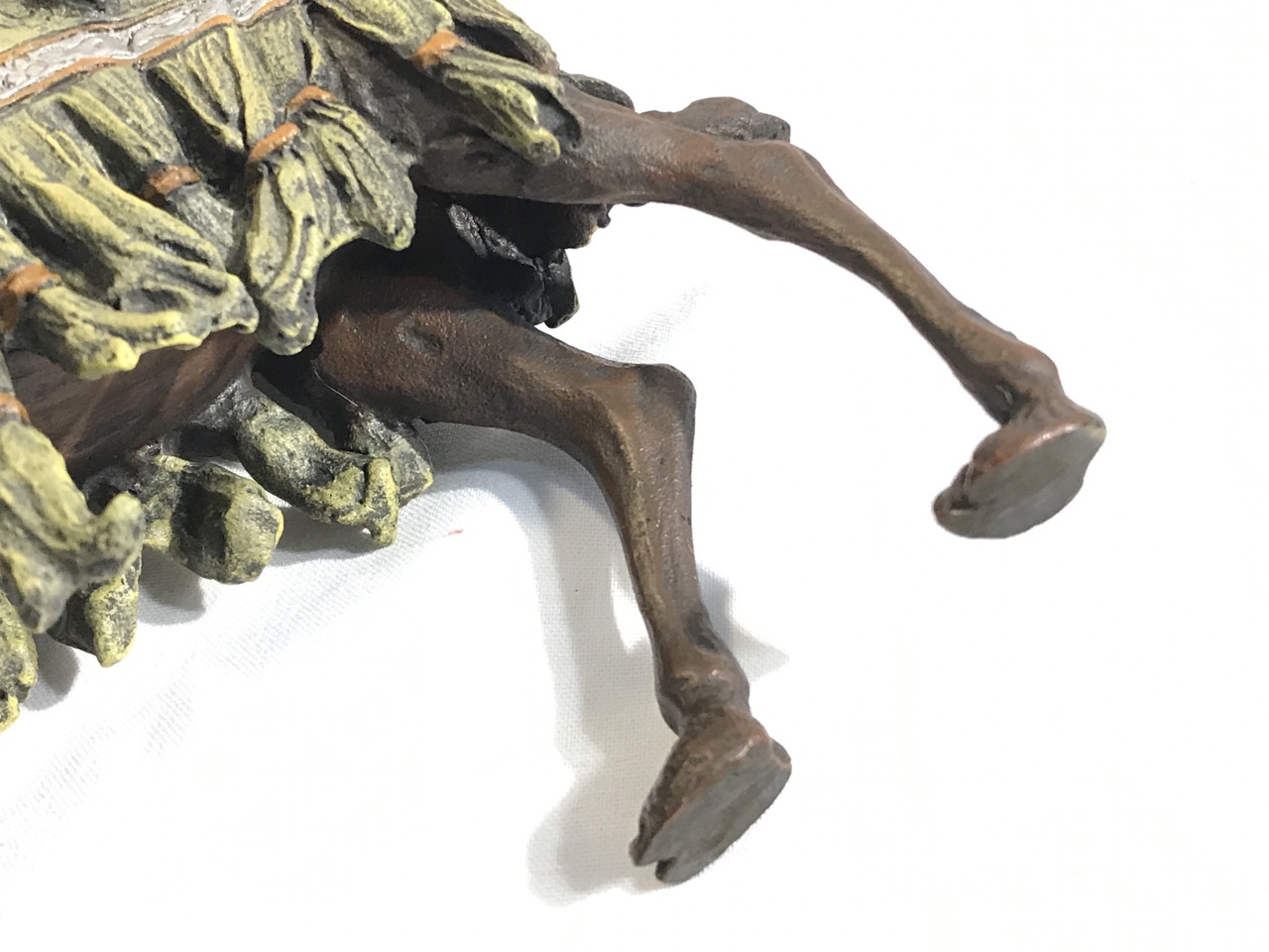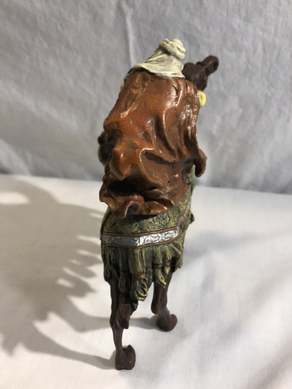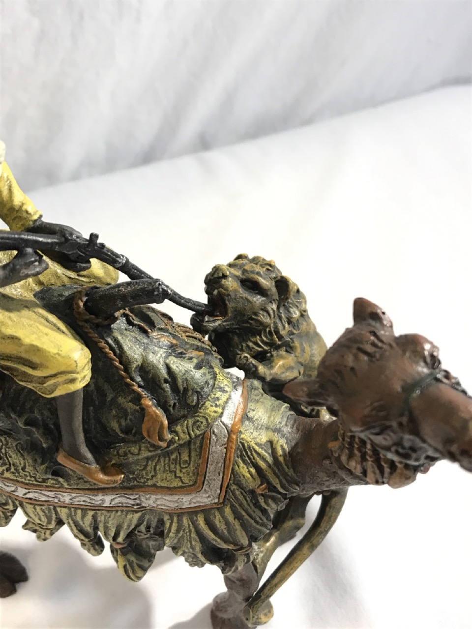 Bronze Sculpture Arab Hunter On Camel Fighting Lion- 7” L x 7.5” T x 4” D