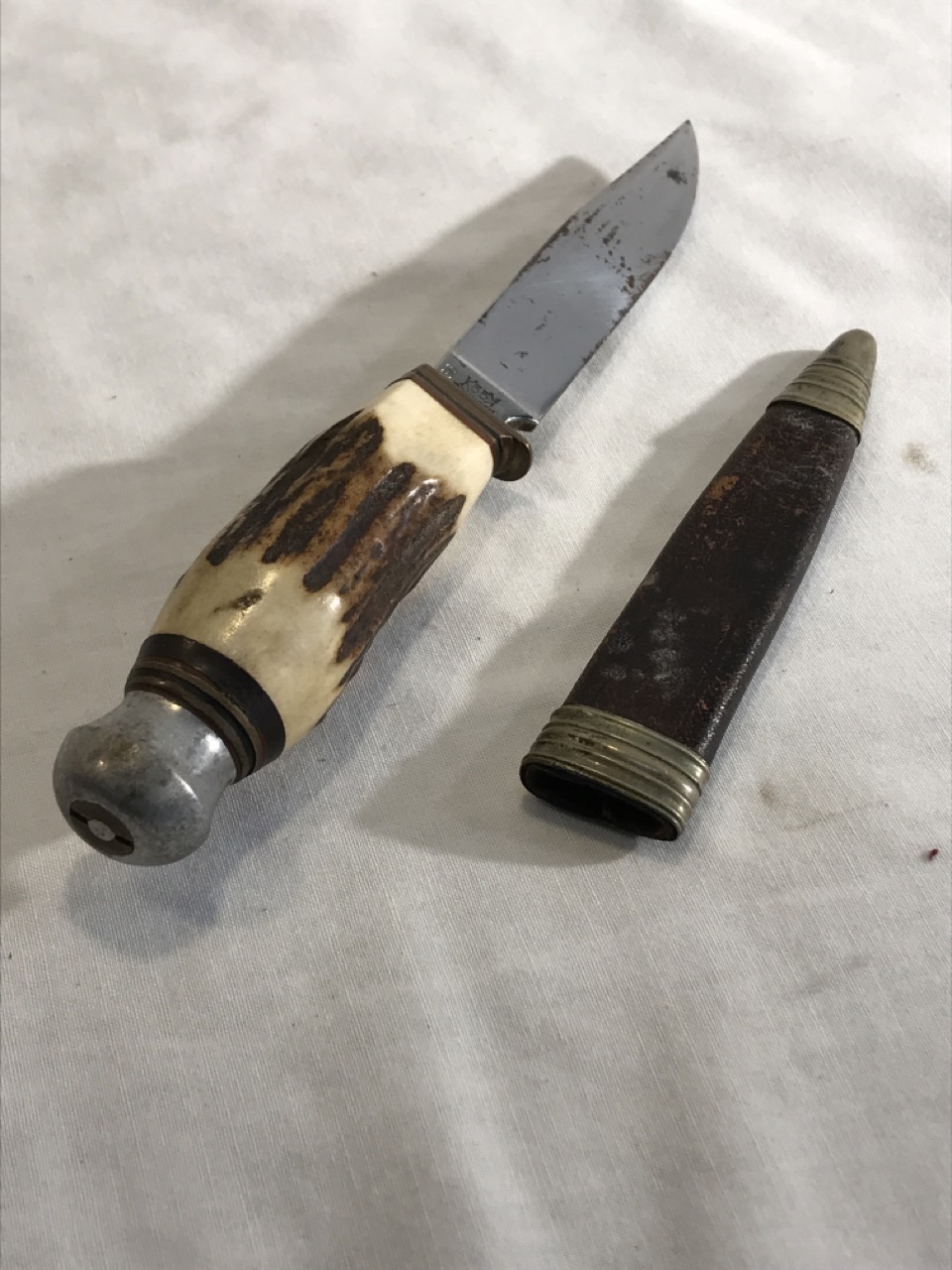 Ky Kaufmann & Sons Germany Solingen Hunting Knife - Stag Handle - Leather Sheath- 8” long