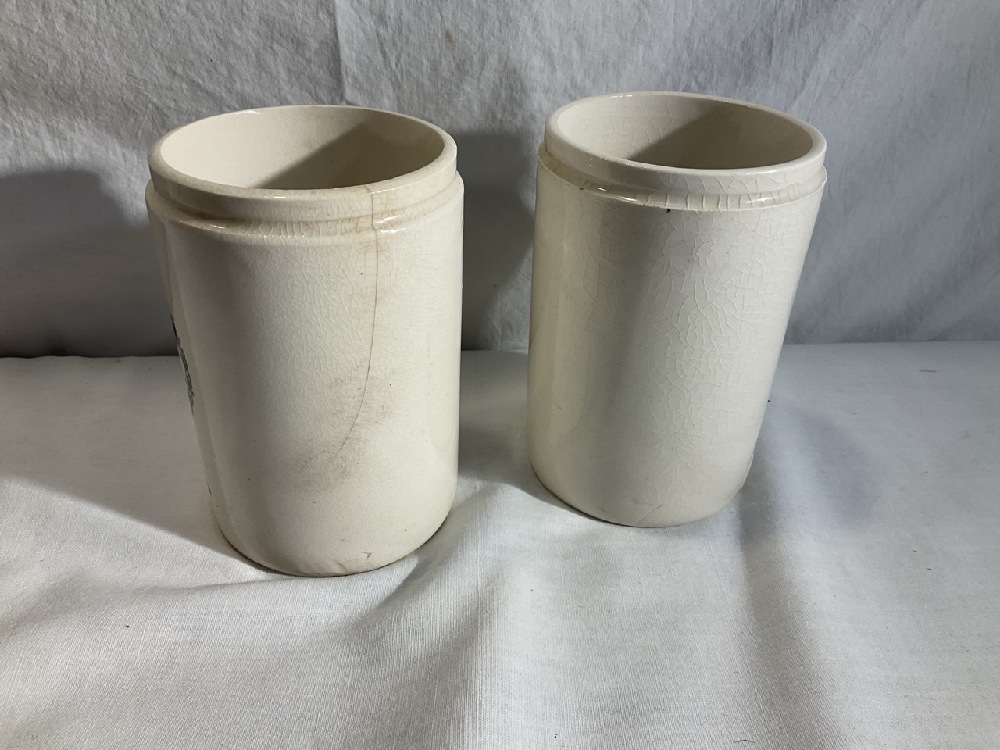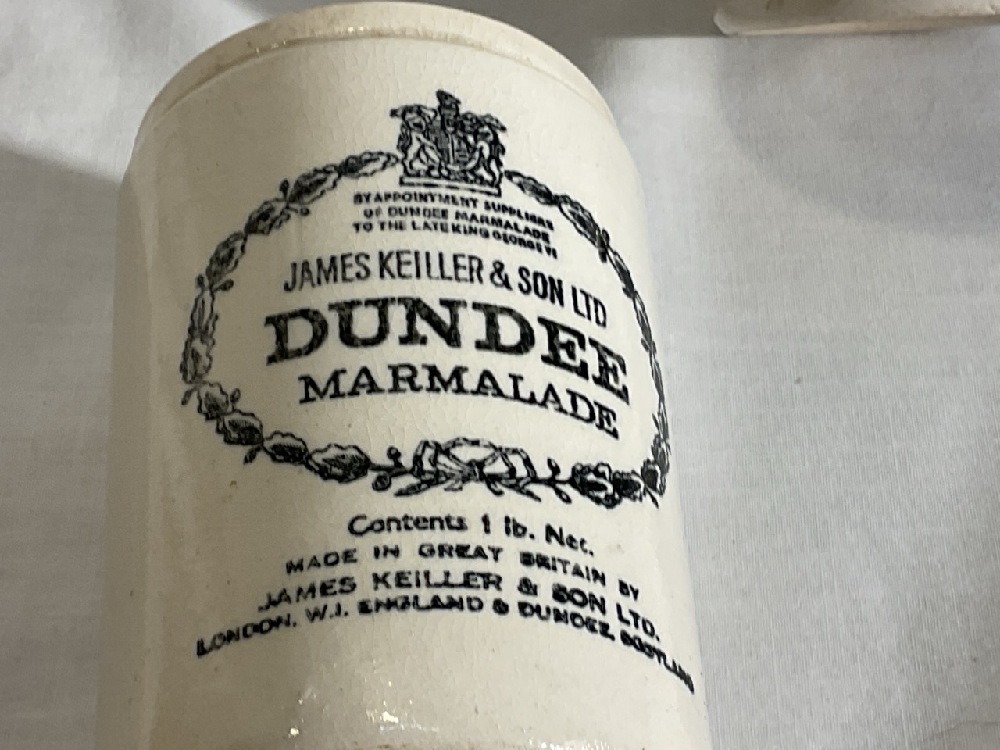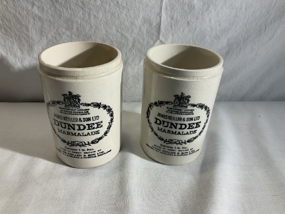 2- Vtg James Keiller & Sons Dundee Marmalade Crocks- 4 3/4” T x 3” Round