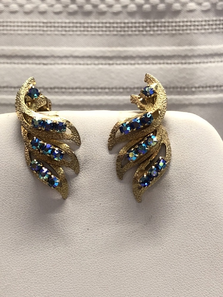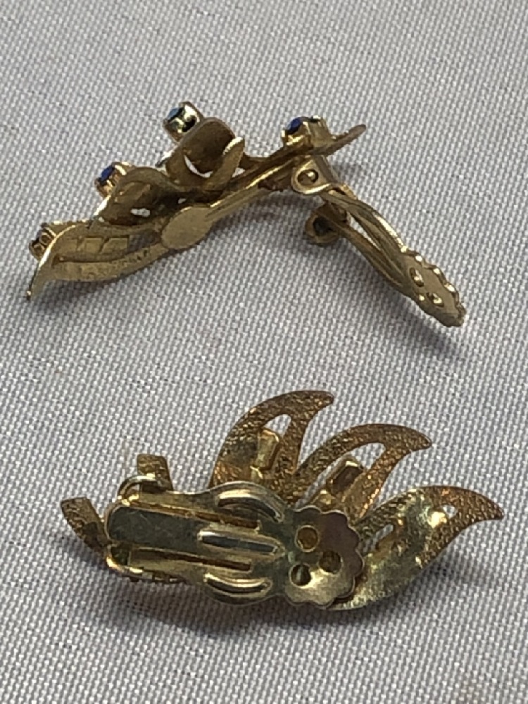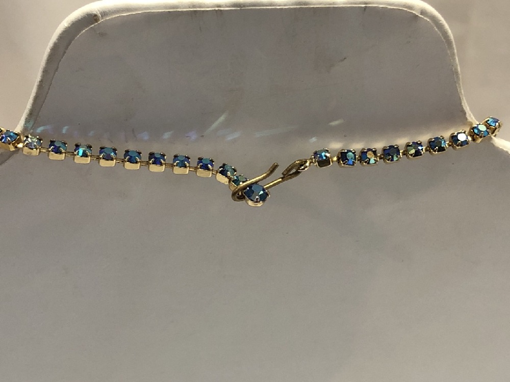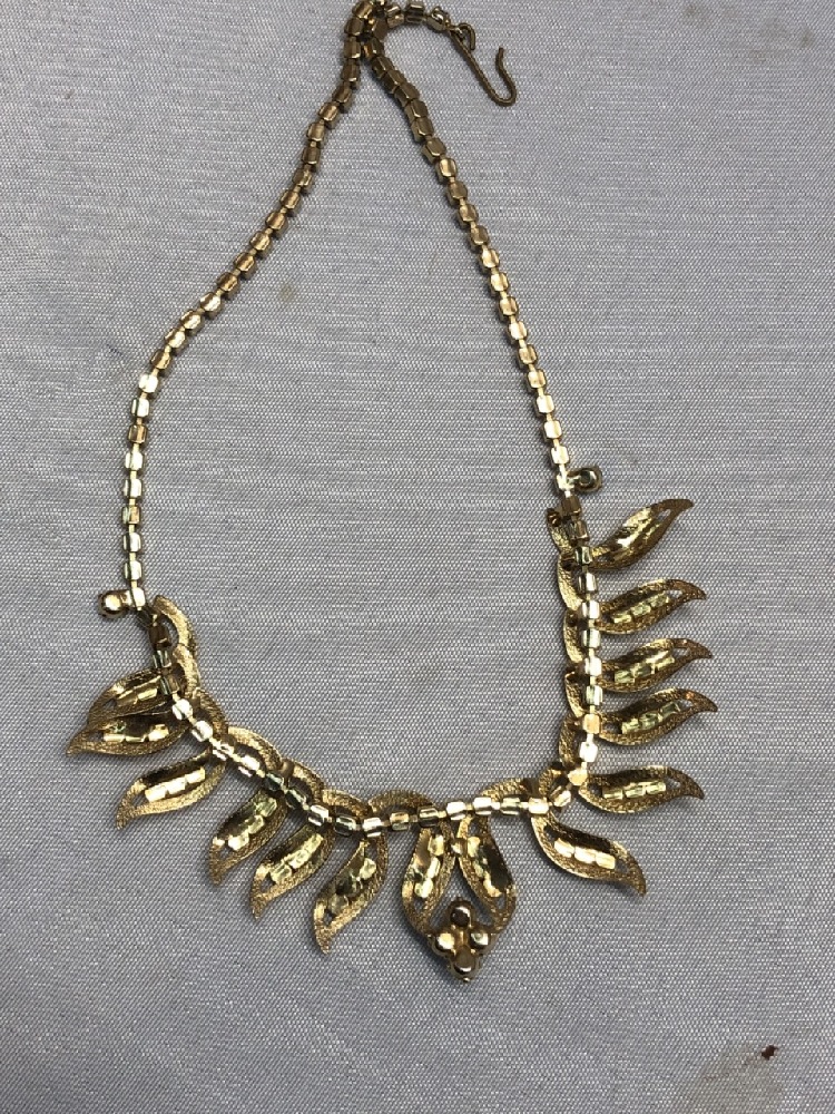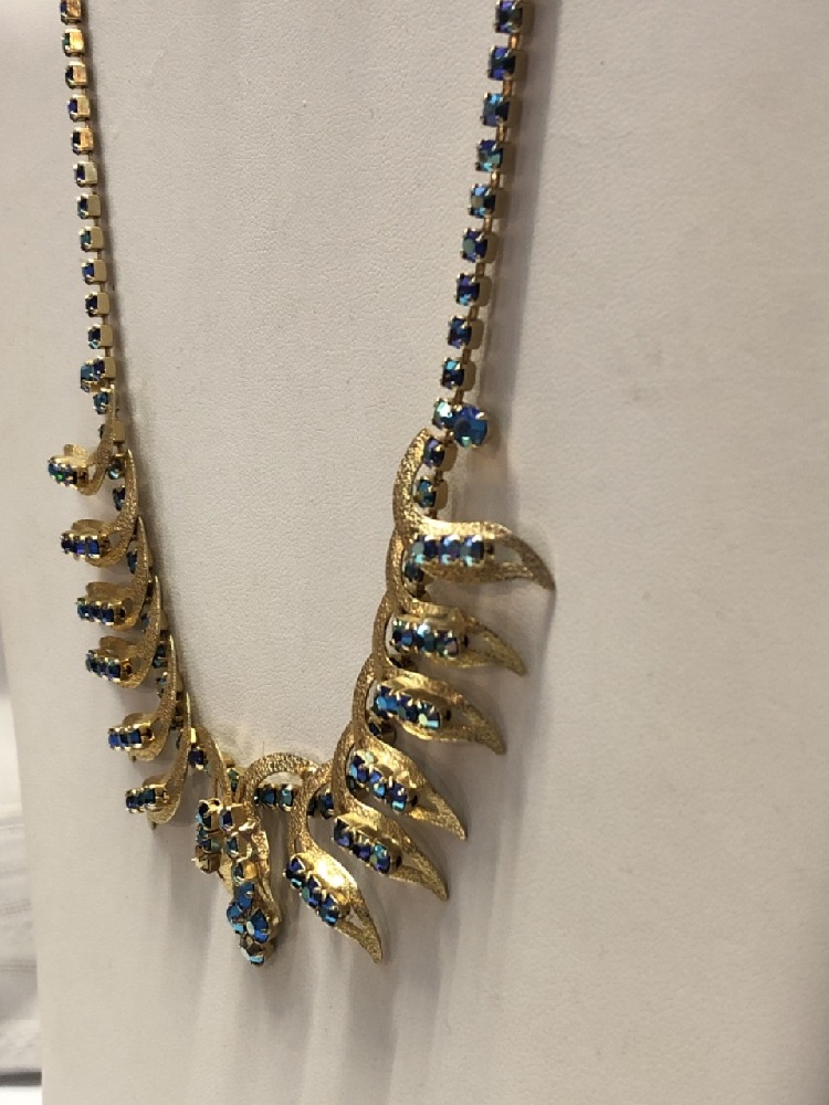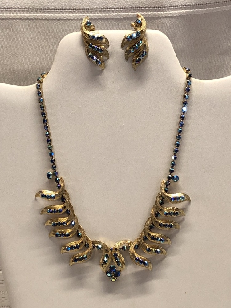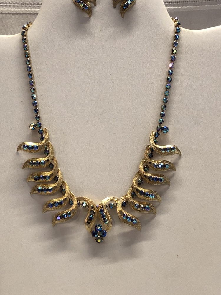 Vintage Necklace and Earrings Jewelry set - Gold Tone and rhinestones- Clip on Earrings